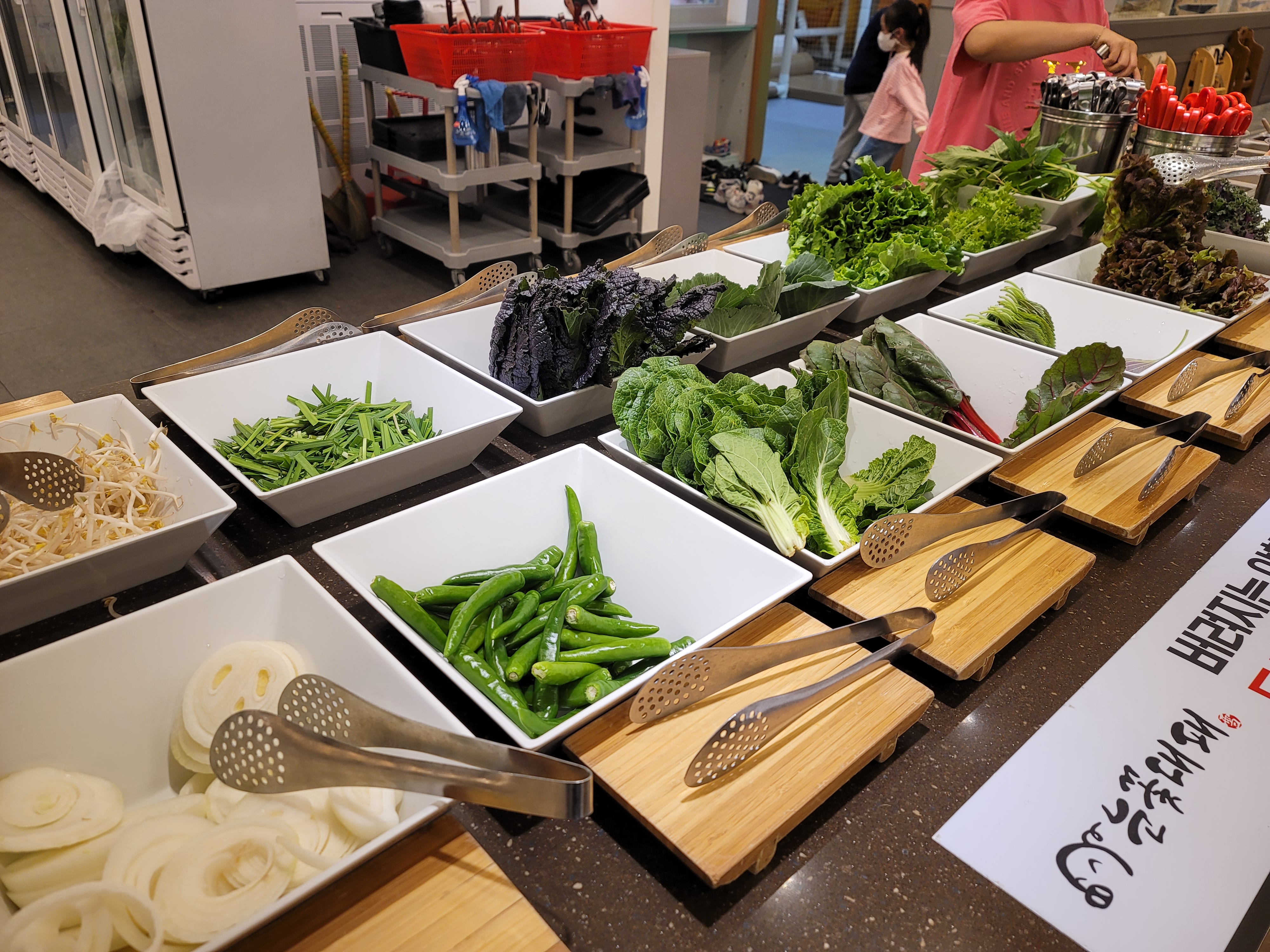들어서자마자 정면에 샐러드바가 크게 자리잡고 있고