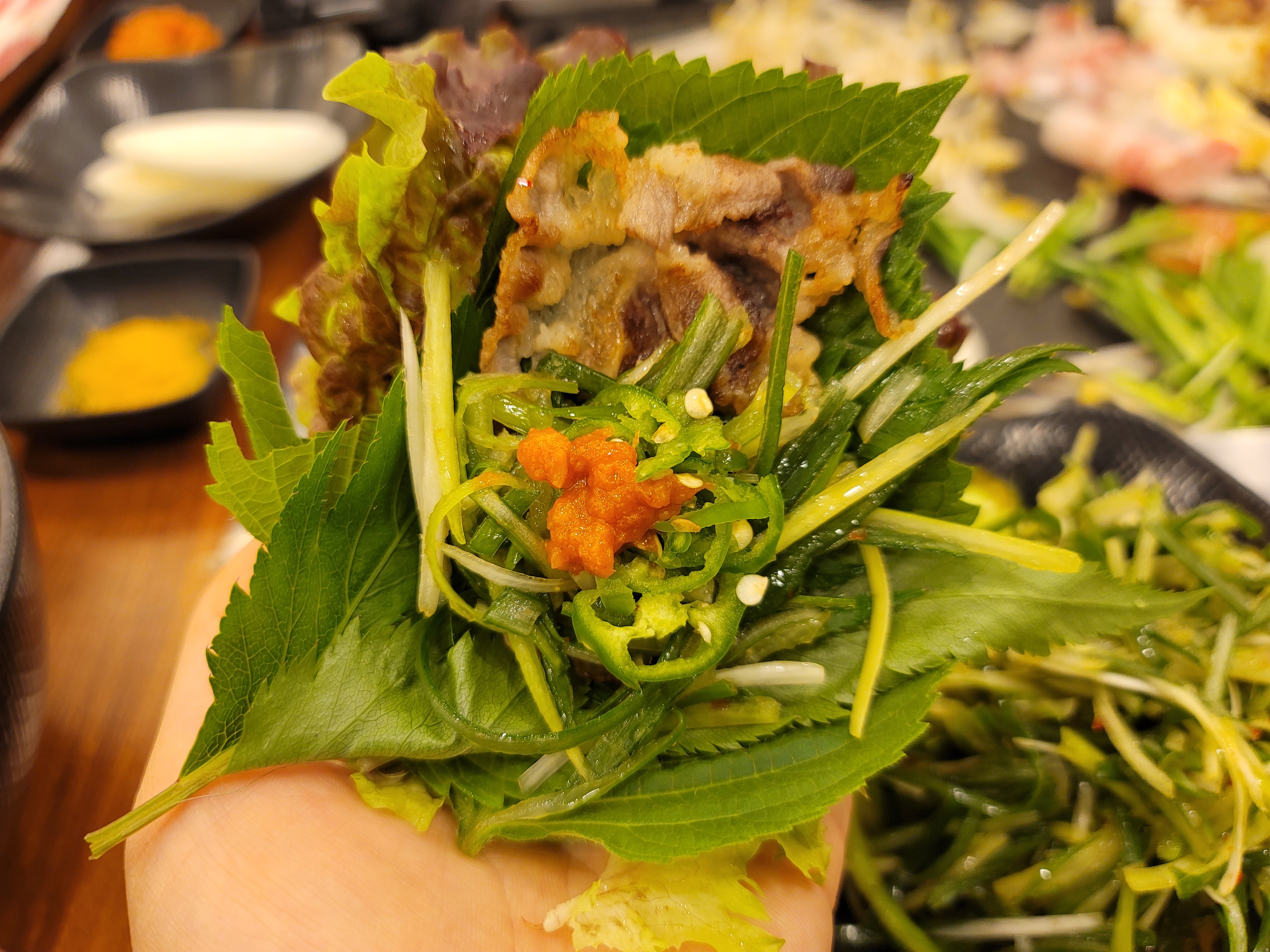 특제소스로 버무려진 파절이넣고 한쌈 제대로 싸서 먹었는데